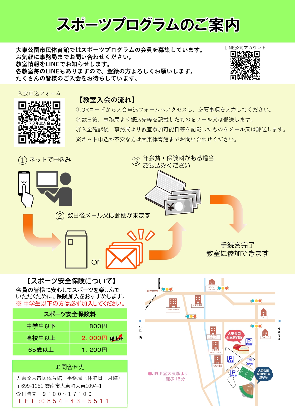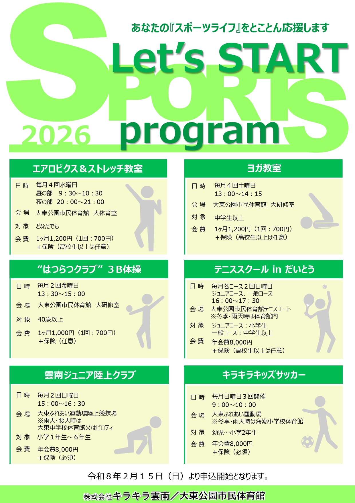 大東体育館では、令和8年度のスポーツプログラム会員を募集しています。